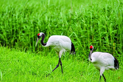 丹顶鹤在黑龙江挠力河湿地觅食。王欢庆摄